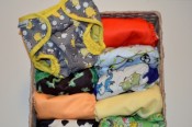 We waited to begin using cloth diapers until our son was big enough to fit into the one-size diapers, which was around 10 pounds and 2 months old. Despite the name, one-size diapers are usually too big for newborns, especially for those under 8 pounds, and I didn’t want to buy two sets of diapers. Waiting a couple of months also allowed time for his belly button to heal, and for us to get used to all of the other demands of parenting. Breast-fed newborns tend to have bowel movements 12 to 14 times a day. That’s more laundry than we were ready to tackle in the beginning, so the disposables were the best choice for us at that time. Now we have a wide variety of cloth diaper brands and options (cover/inserts, pocket diapers, all-in-ones) that were purchased new, used and received as gifts from our baby registry.