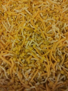 The corn filling before adding the milk, butter and corn flour mixture.