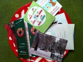 If there is no writing on the inside of the front of a card, cut the card’s picture area down to postcard size. On the blank side, draw a line down the middle, put the address on the right side, and write your greeting on the left side. Ta-da! Holiday cards for next season for the price of a postcard stamp.