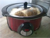 Place the loaf of bread in the slow cooker. (My slow cooker is on the smaller side, so I ended up only being able to fit about 3/4 of the bread inside.)