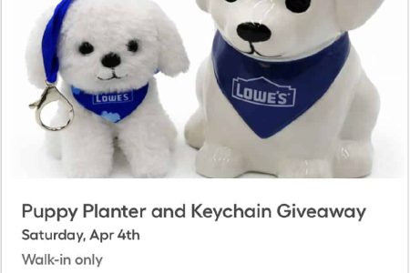 This giveaway from Lowe's will definitely have lots of tails wagging! There's a reason everyone loves puppies....they're just so cute and cuddly.And the home improvement store is giving away two super cute "puppy" items on April 4, 2026 that are sure to be in demand for puppy fans and … [Read more...] about Get free Puppy Planter & Plushie Keychain at Lowe’s for one day only