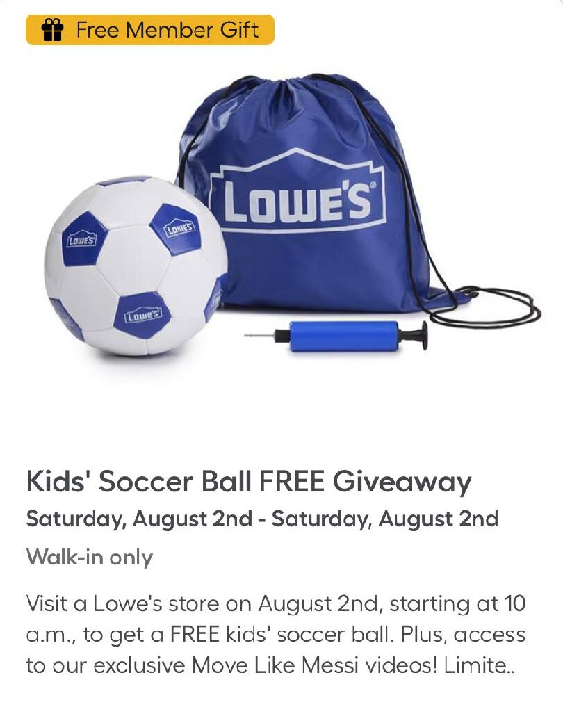 On Aug. 2, 2025, Lowe’s is celebrating summer by giving away a FREE Kids’ Soccer Ball to MyLowe’s loyalty members at every participating location, while supplies last — starting at 10 a.m. No purchase necessary.