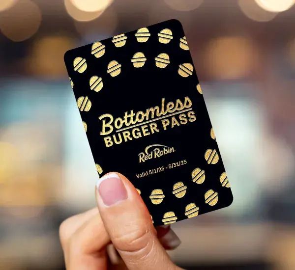 Red Robin’s Bottomless Burger Pass is redeemable for one gourmet burger served with a bottomless side each day of the month in May. That’s 31 meals for jus 20 bucks! Substitutions, additions or premium sides may result in an additional charge.
