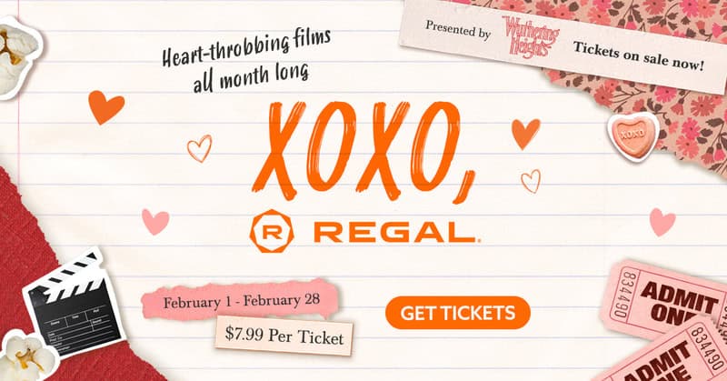 From Feb. 1 to 28, 2026, Regal Cinemas is hosting its XOXO, Regal series at participating locations and, even better, at a lovely price — just $7.99 per ticket.