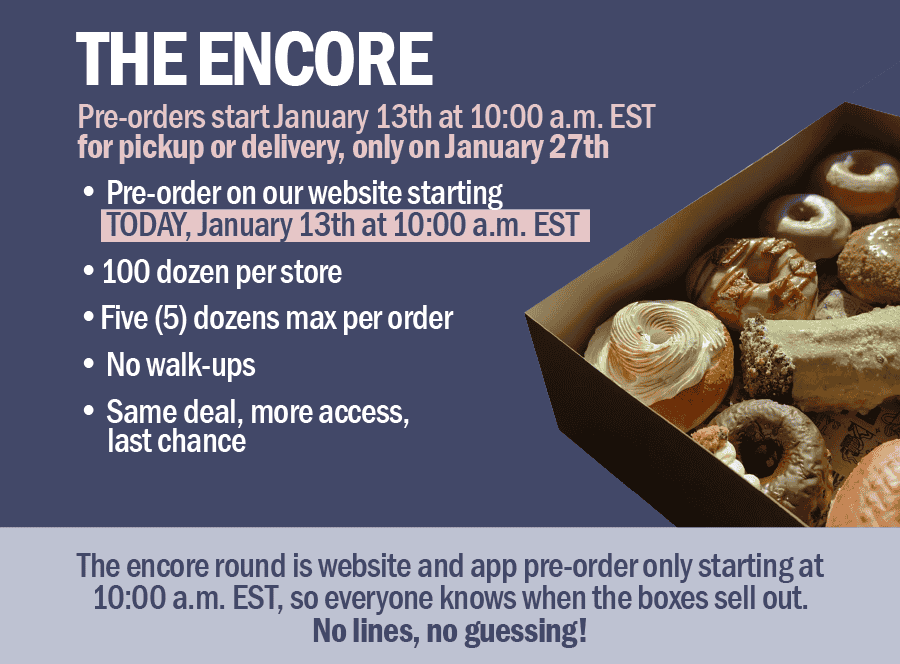 Yesterday, they ran a major sale, and today they’re making up for customers who were frustrated by missing out. The donut deal applies to future pickup orders. See the details below.