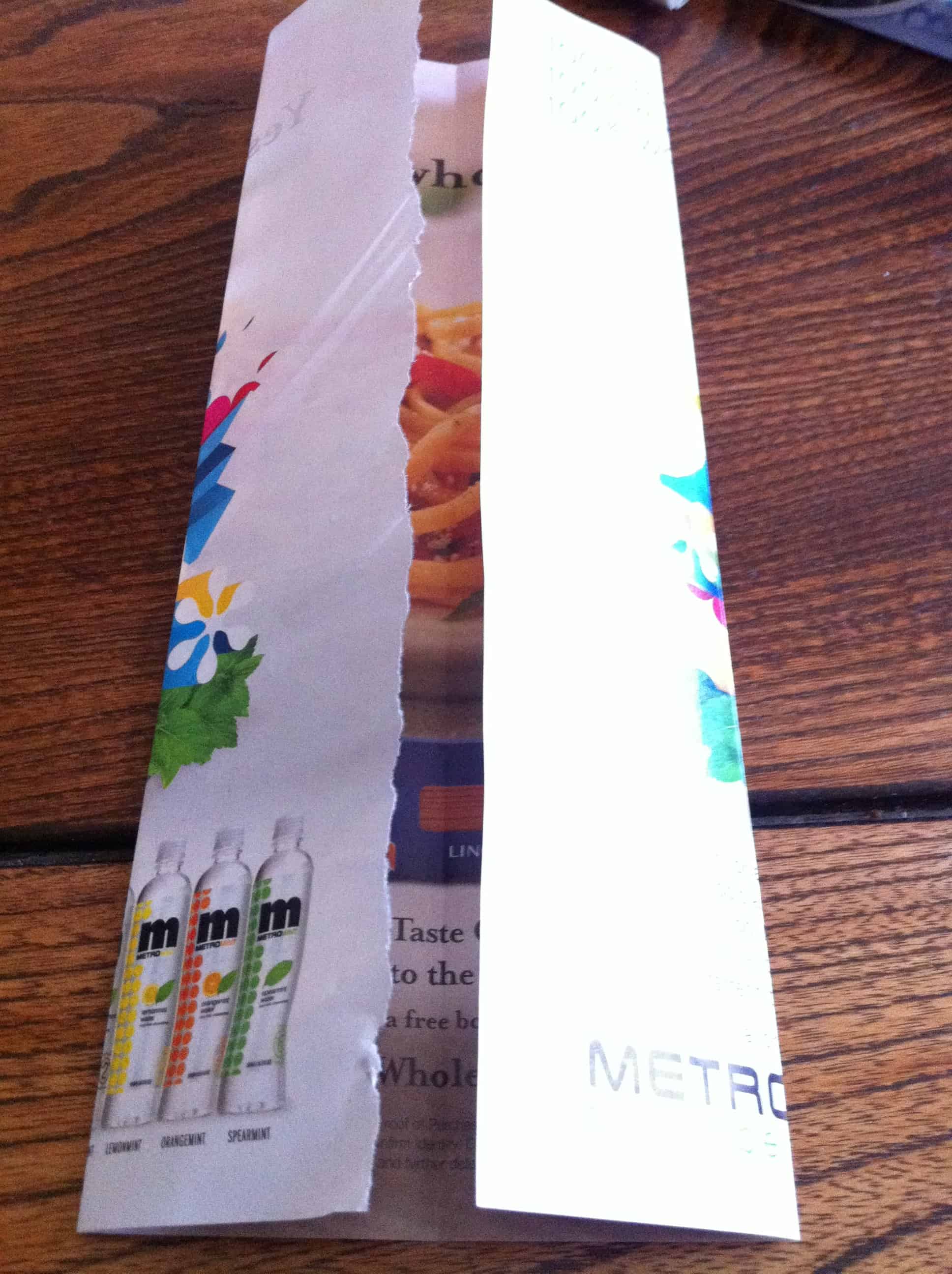 Tear out the pages of your magazine, discarding any irregular pages (perfume samples, thick pages, recipe cards, etc). Don’t worry if the torn edges are a little jagged. Those will be folded in and won’t show.