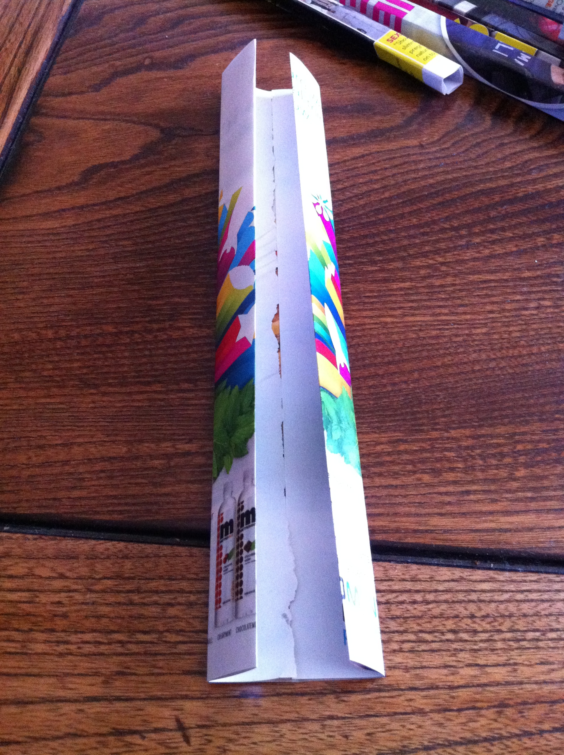 When you get it to the height that you want, use a ruler or piece of paper to measure the sides to make sure they are pushed up to the same approximate height. (You can also eyeball it.) Trim off any pieces of tape that you see sticking up, if any.